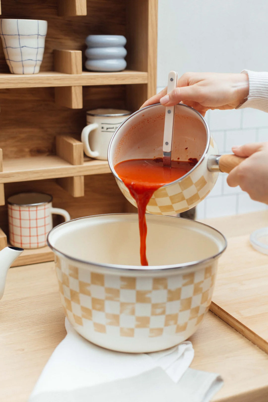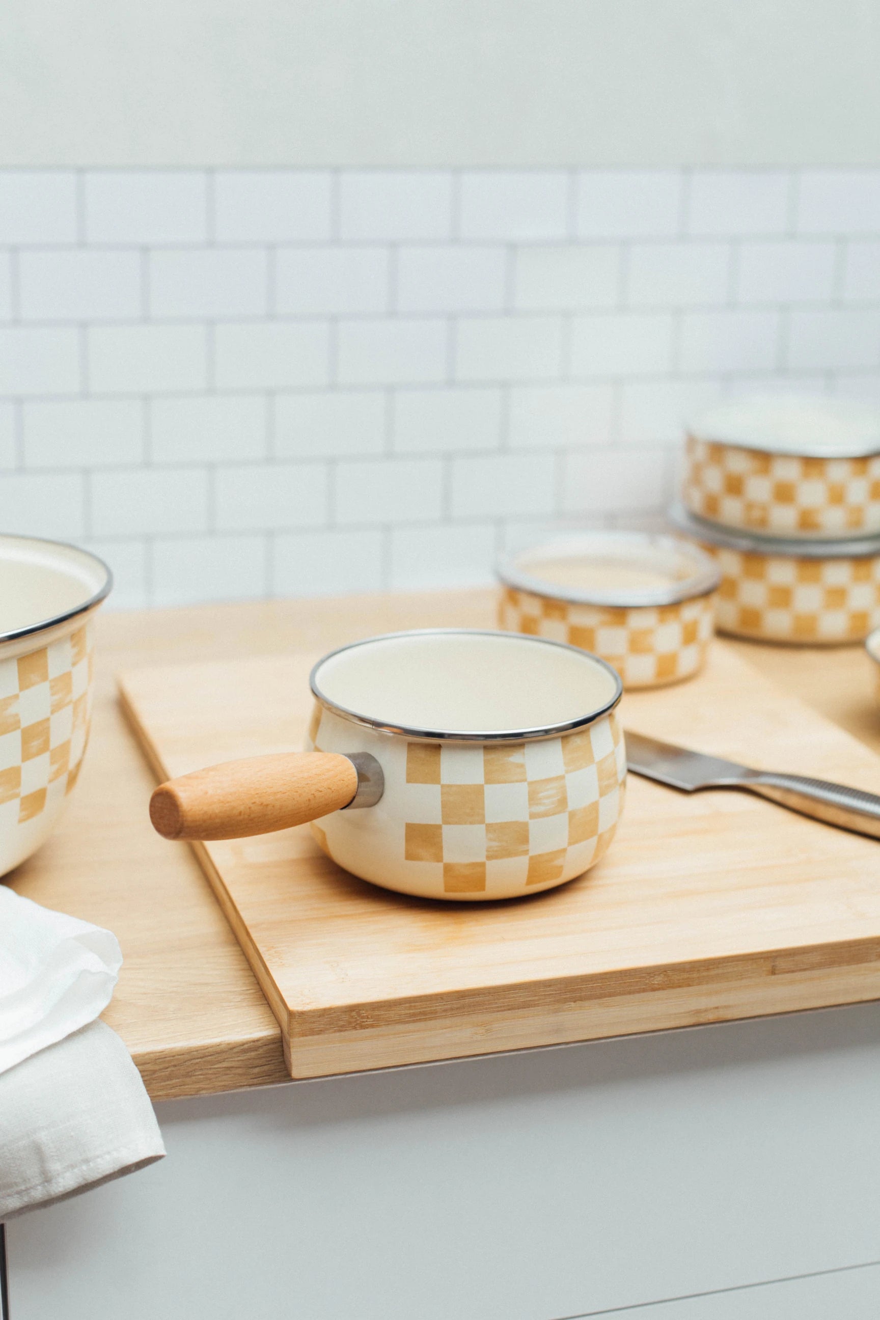 “Mutfakta sade olsun ama güçlü de dursun” diyenler için tasarlandı. Kahverenginin doğal tonlarıyla yumuşatılan dama deseni, modern ve huzurlu bir görünüm kazandı. Hem İskandinav tarzı minimal mutfaklarda hem de renkli sofralarda kendine zarif bir yer buluyor.